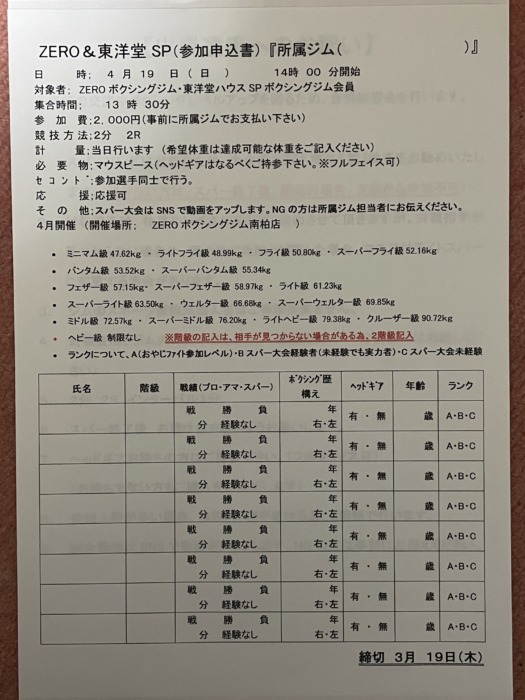4月19日日曜日に南柏店で、東洋堂ハウスSPボクシングジムさんとZEROボクシングジムでスパーリング大会を行います🥊